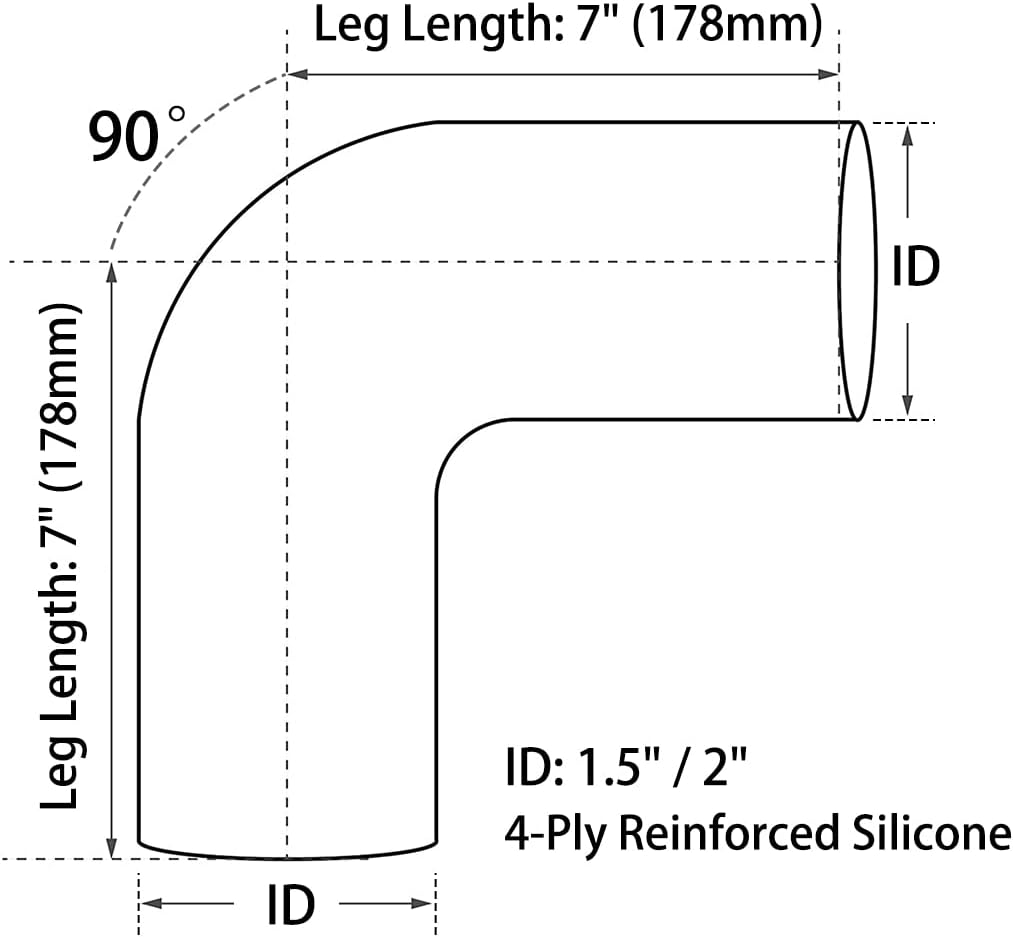 The 90° Silicone Bend Pipe is Made of 4-Ply Reinforced High-Quality Polyester Nd Pure Silicone Material for Superior Performance, High-Temperature Resistance, Universal Fit.